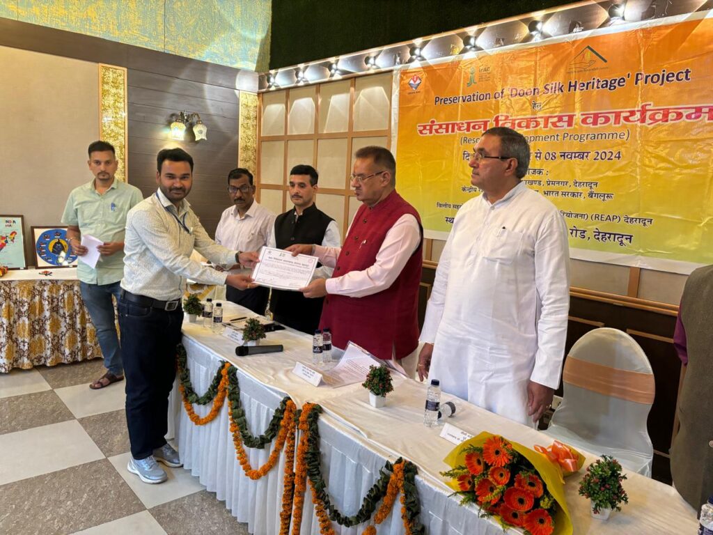 प्रदेश में REAP के अंतर्गत रेशम निदेशालय उत्तराखंड द्वारा संचालित Preservation of Doon silk Heritage Project का संचालन किया जा रहा है, जिसके तहत योजना क्रियान्वयन में लगे लगभग 30 विभागीय अधिकारियों, कर्मचारियों को संसाधन विकास कार्यक्रम के अन्तर्गत 3 दिवसीय प्रशिक्षण भारत सरकार के विषय विशेषज्ञों, केंद्रीय रेशम बोर्ड के वरिष्ठ वैज्ञानिकों द्वारा दिया गया।