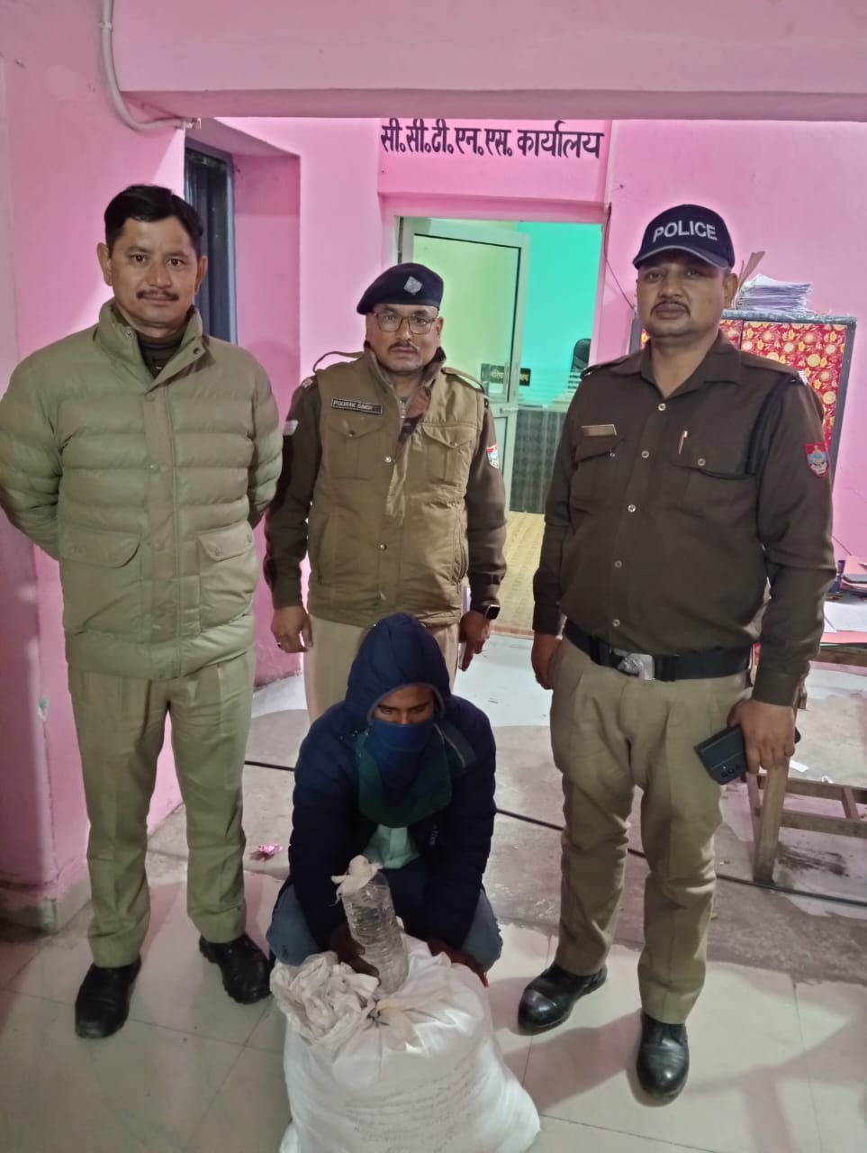 इसी क्रम में प्रकाश चंद्र एसपी सिटी हल्द्वानी के दिशा निर्देशन, दीपशिखा अग्रवाल क्षेत्राधिकारी लालकुआं के पर्यवेक्षण में दिनेश फर्त्याल प्रभारी निरीक्षक लालकुआं के कुशल नेतृत्व में थाना लालकुआं पुलिस द्वारा क्षेत्र में अवैध शराब के विरुद्ध चलाये अभियान के तहत 28/01/2025 को दौराने गस्त मोबाइल हेड कांस्टेबल पूरन सिंह रायपा व हमराही कर्मचारी कांस्टेबल तरुण मेहता व कांस्टेबल आनंदपुरी के आईटीबीपी के पास स्लीपर फैक्ट्री लालकुआं से अभियुक्त आसिफ पुत्र गुलफाम निवासी बजरी कंपनी लालकुआं को एक प्लास्टिक के कट्टे में 119 पाउच अवैध कच्ची शराब खाम के गिरफ्तार कर अभियुक्त के विरुद्ध कोतवाली लालकुआं में धारा 60 आबकारी अधिनियम में अभियोग पंजिकृत किया गया है !