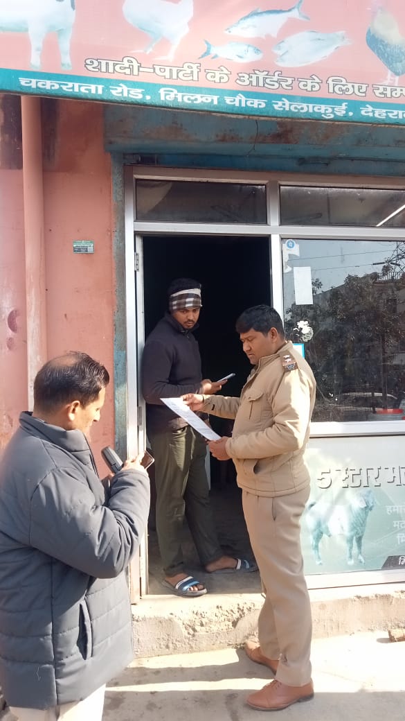 मांस की दुकानों का दून पुलिस ने किया औचक निरीक्षण