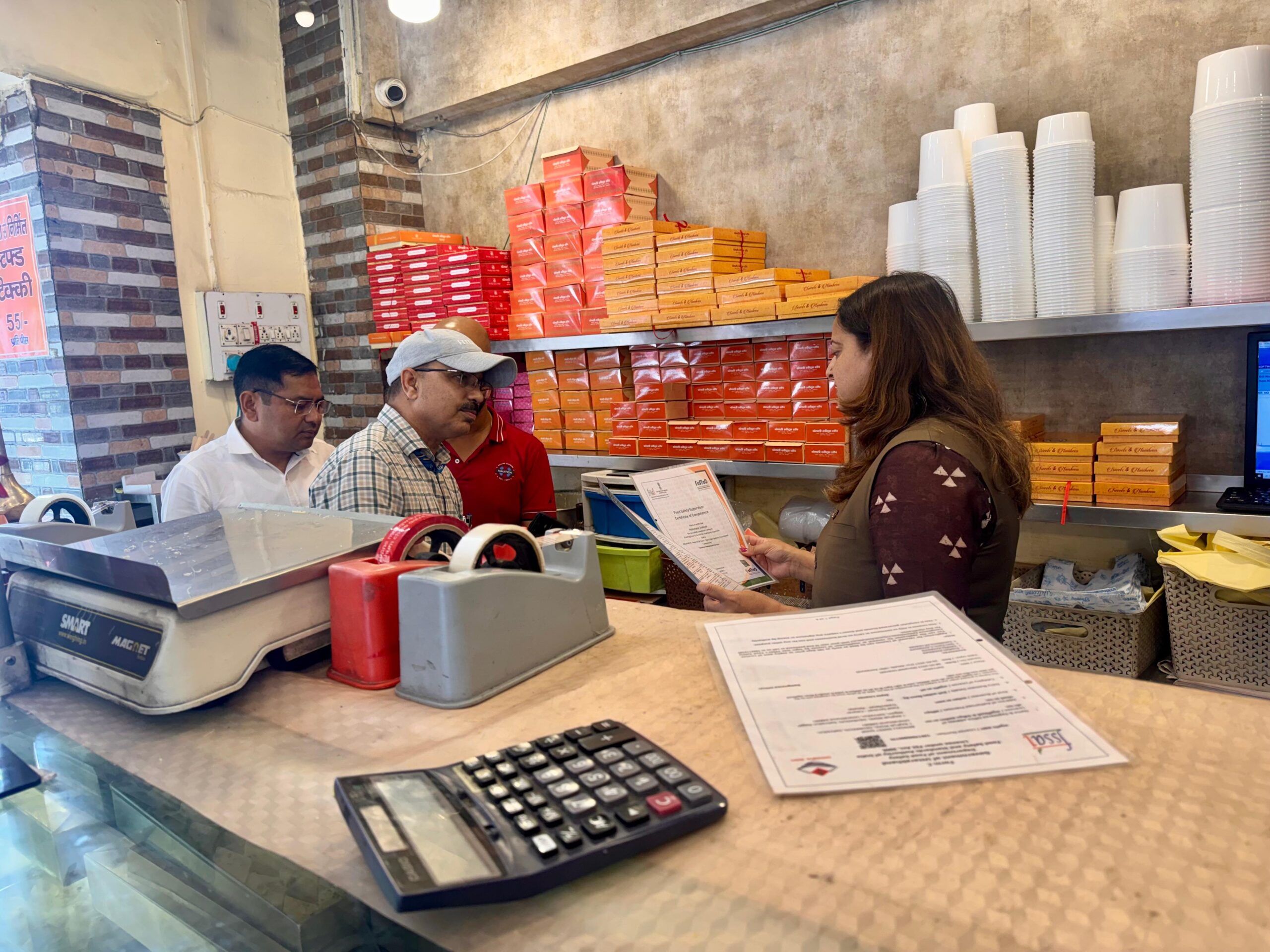 उपभोक्ताओं की सुरक्षा हेतु मिठाई दुकानों पर छापेमारी-जैसा निरीक्षण, खाद्य गुणवत्ता जांची गई