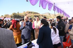 जन-जन की सरकार, जन-जन के द्वार अभियान के अंतर्गत प्रभारी मंत्री सुबोध उनियाल की अध्यक्षता में सोमवार को विकासखंड कालसी स्थित पंजीटिलानी मिनी स्टेडियम में वृहद बहुउद्देशीय शिविर का आयोजन किया गया। शिविर के माध्यम से आम जनता को विभिन्न जनकल्याणकारी योजनाओं का प्रत्यक्ष लाभ प्रदान किया गया। इस अवसर पर प्रभारी मंत्री और जिलाधिकारी सविन बंसल ने शिविर में लगाए गए विभागीय स्टॉलों का निरीक्षण किया और देहरादून जिला सूचना अधिकारी कार्यालय द्वारा प्रकाशित ”विकास पुस्तिका-2025” का विमोचन भी किया। शिविर में लगे विभागीय स्टालो पर 1286 से अधिक लोगों का लाभान्वित किया गया।