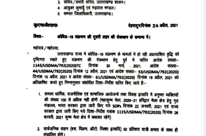 देहरादून- प्रदेश सरकार ने फिर संशोधित गाइडलाइन की जारी रात्रि कर्फ्यू के समय में...