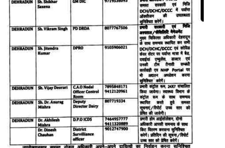 इन अधिकारियो से संपर्क कर ले सकते हैं आईशोलेशन व कोरोना से सम्बंधित जानकारी।...