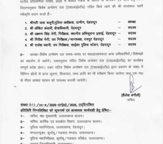 SIT को लेकर जारी हुआ आदेश दिनांक 21.09.2025 को उत्तराखण्ड अधीनस्थ सेवा चयन आयोग...