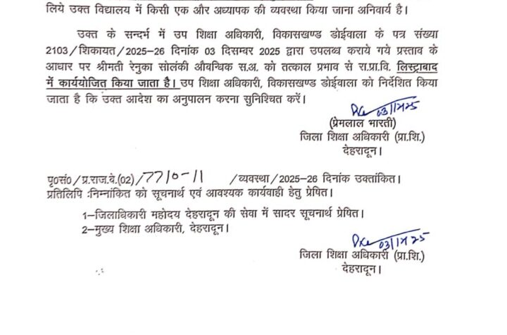 डीएम के निर्देश पर 24 घंटे के भीतर रा.प्रा.वि. लिस्ट्राबाद में शिक्षिका की...