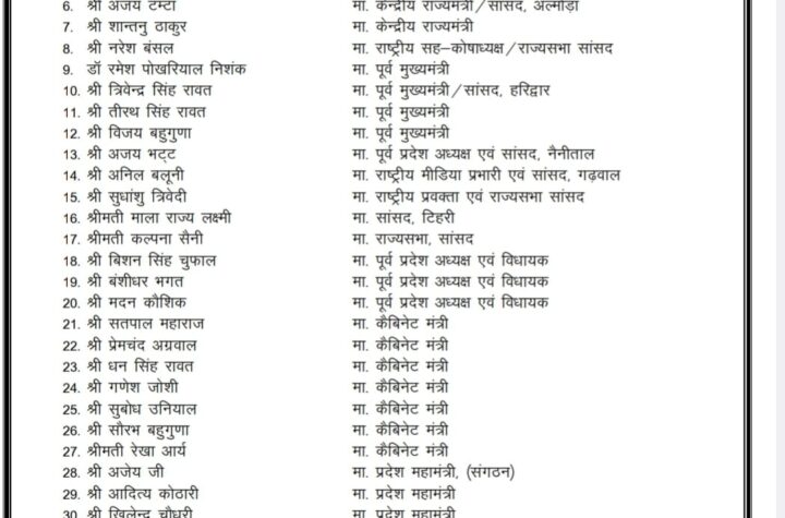 देहरादून। निकाय चुनाव के लिए भाजपा की स्टार प्रचारकों की सूची जारी उत्तरप्रदेश के...