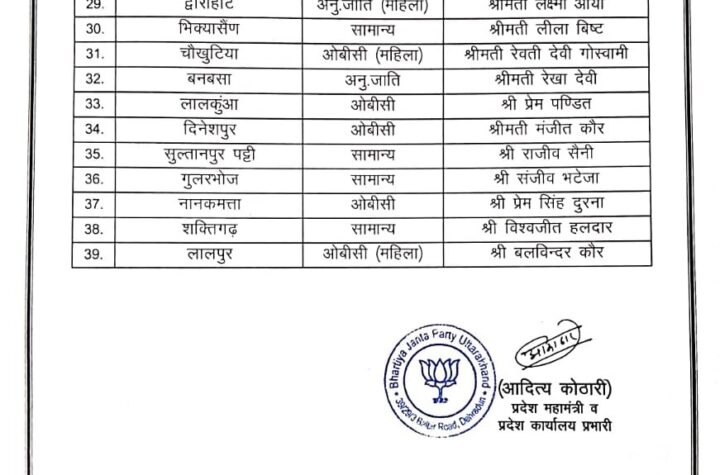नगर पालिका/ पंचायतों की सूची जारी देहरादून। भाजपा ने नगर पालिका और नगर पंचायत...