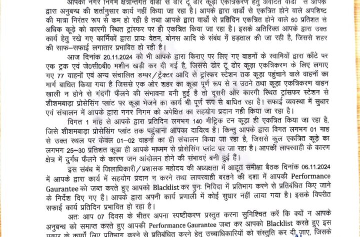 कूड़ा उठान में लापरवाही: इकॉन वाटरग्रेस को नोटिस, ब्लैकलिस्ट की चेतावनी नगर निगम की...