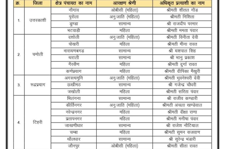 देहरादून। बीजेपी ने ब्लॉक प्रमुख पदों के लिए जारी की प्रत्याशियों की सूची।