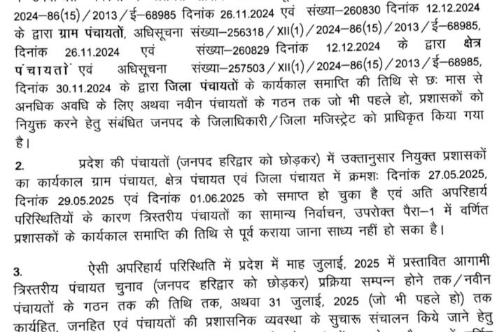 पंचायतों में प्रशासक किए गए नियुक्त, देखें आदेश… देहरादूनः 09 जून, 2025 :: अधिसूचना...