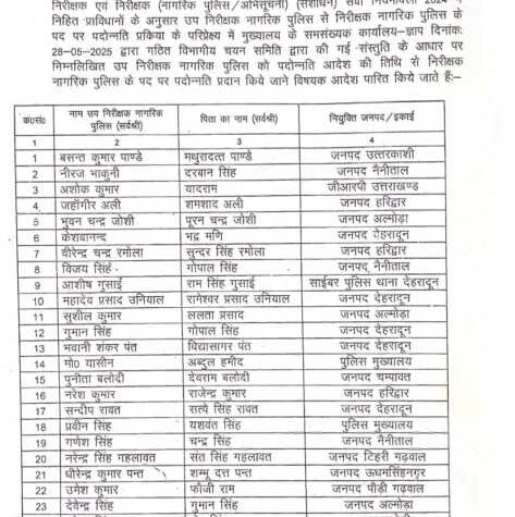 उत्तराखण्ड पुलिस में 57 उप निरीक्षकों को प्रमोशन का तोहफ़ा उत्तराखण्ड पुलिस विभागान्तर्गत चयन...
