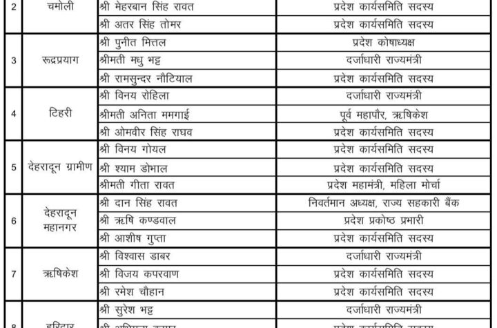 बड़ी खबर:- प्रदेश में भाजपा जिला अध्यक्षों के चुनाव हेतु नियुक्त किये गए पर्यवेक्षक...